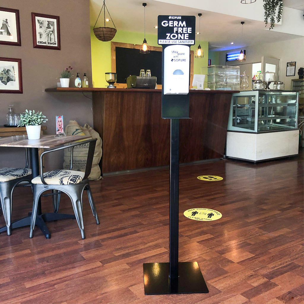 "Germ Free Zone" Touch Free Automatic Hand Sanitizing unit.